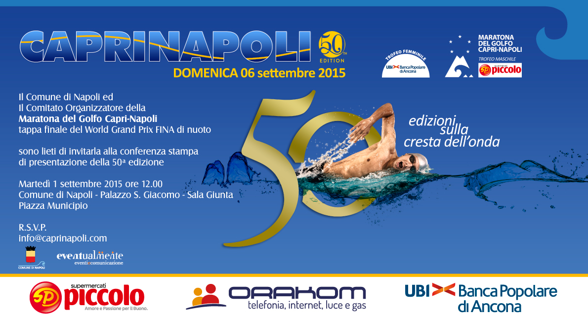 La Capri-Napoli trofeo supermercati Piccolo del 2015 è un appuntamento storico per lo sport italiano. La gara di nuoto di fondo, valida come tappa conclusiva del Grand Prix Fina (la Coppa del Mondo per le prove che si disputano su distanze superiori ai 10 km), giunge infatti alla cinquantesima edizione (la prima fu disputata nel 1954 prima di una pausa tra il 1992 e il 2003).
